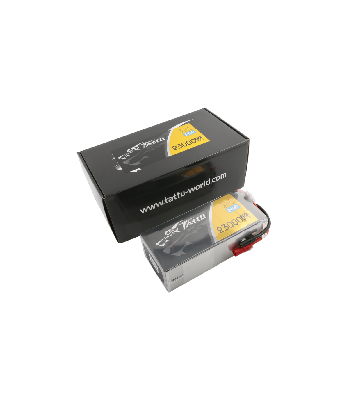 This TATTU HV battery offers a capacity of 23000 mAh in 6s (22.8 V) for a discharge rate of 25C. The battery connector is AS150 +XT150. It measures 207 x 91 x 62 mm (Length, width, height), weighs 2475 g.