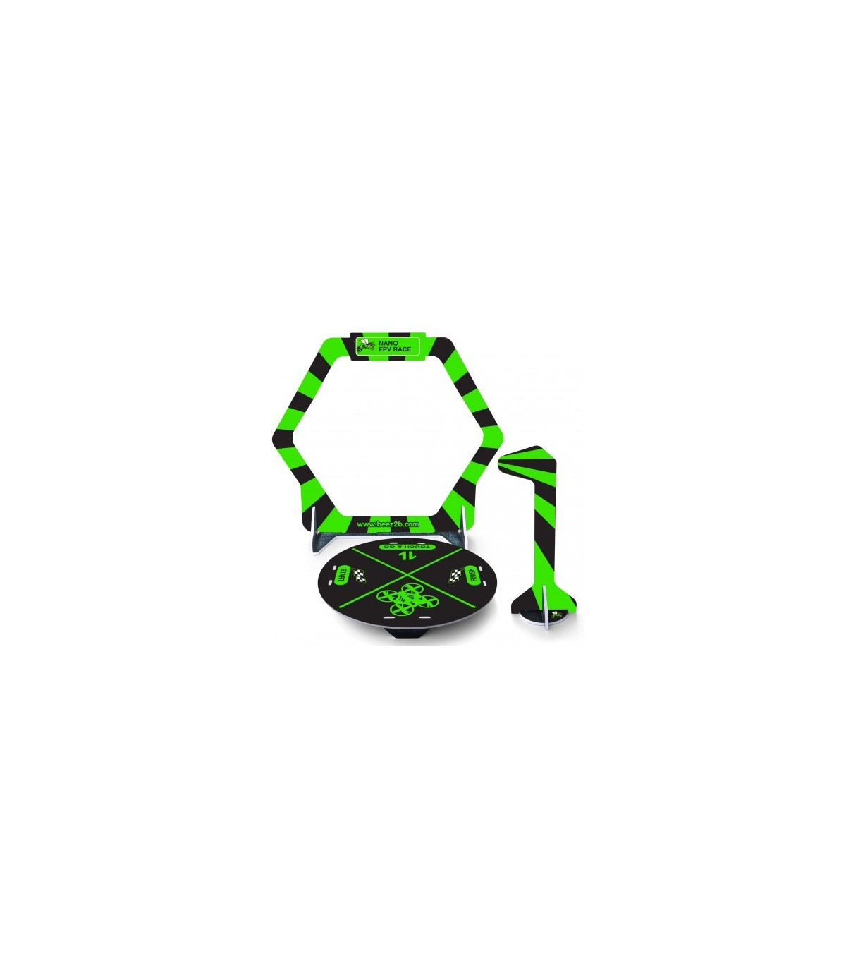 With this set, you can create a very nice course for the nano FPV racers and other Tiny Whoops, on tables, at the office, at home or outdoors. You will have 3 starting bases, three doors and three flags (green, yellow, and red), for a price of more reduced. Race like the pros with your friends !