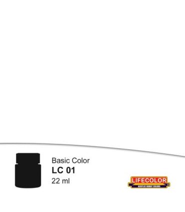Pot de peinture acrylique blanc mat(FS 39725). Diluable à l'eau ou au Thinner(diluant LIFECOLOR). Fort pouvoir couvrant, utilisation facile au pinceau ou à l'aérographe. Pour accentuer le pouvoir couvrant ou la densité des peintures, ajouter quelques gouttes de "Thickener" LIFECOLOR. Attendre le séchage complet entre l'application de 2 couches de peinture. Nettoyage des outils avec de l'eau ou du "Thinner". Utilisation sur plastique, résine, vinyl, bois, vêtements et céramique.