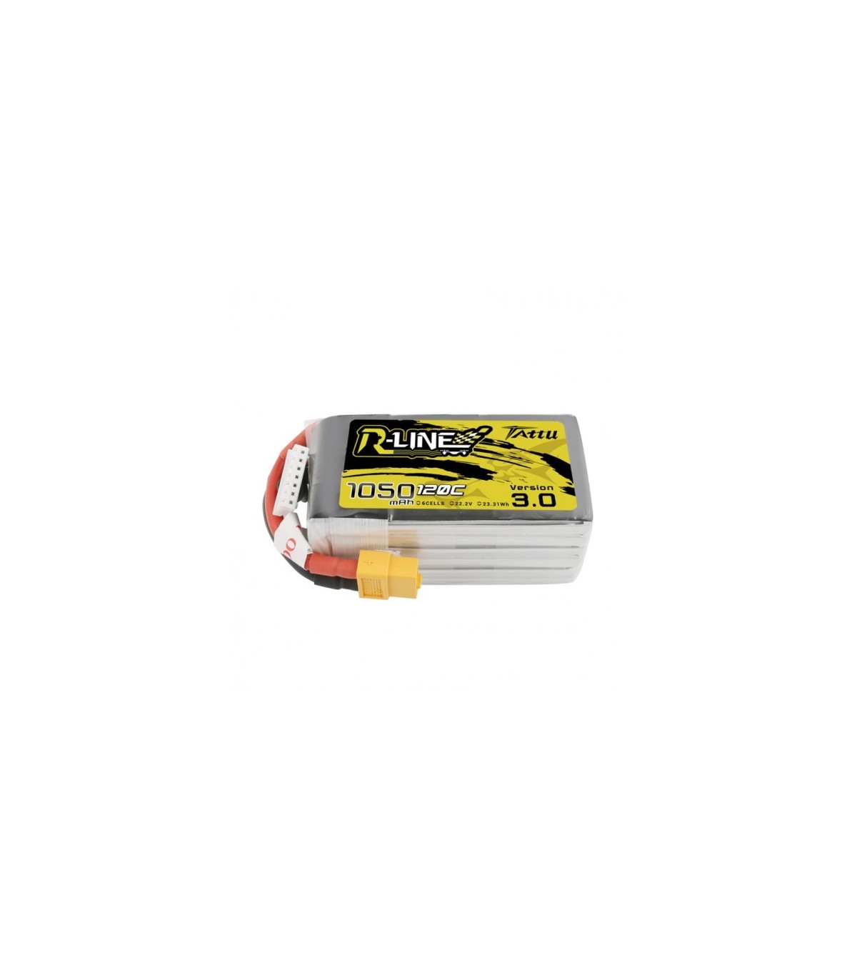 A Lipo Tattu R-line V3. 0 6s 1050mAh 120C, são otimizados para corridas.